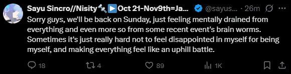 The issue isn't them dating. The issue is dating while larping as a lonely incel girlfailure, to appear relatable. IDC if a vtuber dates people, but don't skinwalk my shtty life to try and get more money. The most annyin ones are like Numi who also claim to be vigins. Like you mean to tell me you're not fat, clearly not a prude, you drink, you attend parties and have a bunch of friends and yet you're a virgin who has never even had a date and uys just ignore you?
