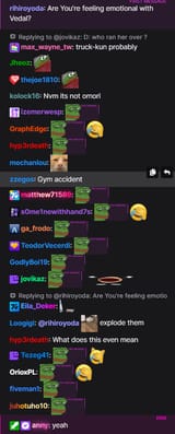 >a long series of him replying to female streamers saying "take your shirt off"