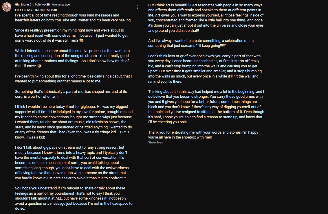 Great, now the Grems will become edglords using the ''tragic background'' of their oshi for everything. It's sad and all, but I'm sorry, it's nothing special, and they're going to use it as if it is.