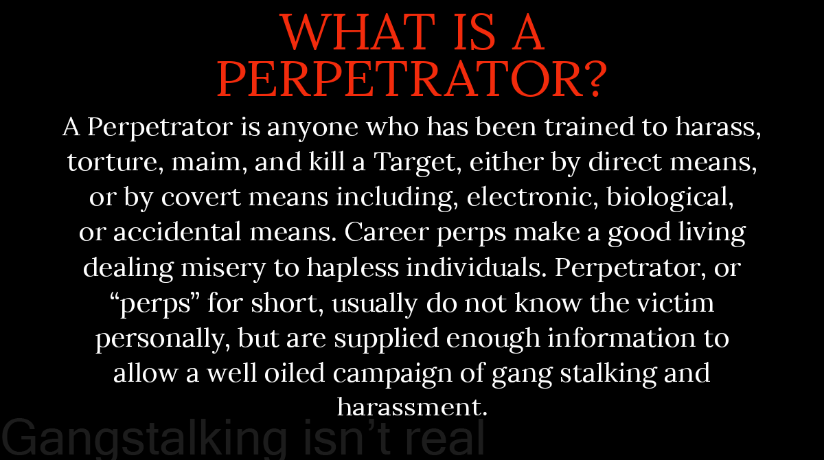 >Gangstalking usually happens when a person that has commited no crimes is defamed in some way.
