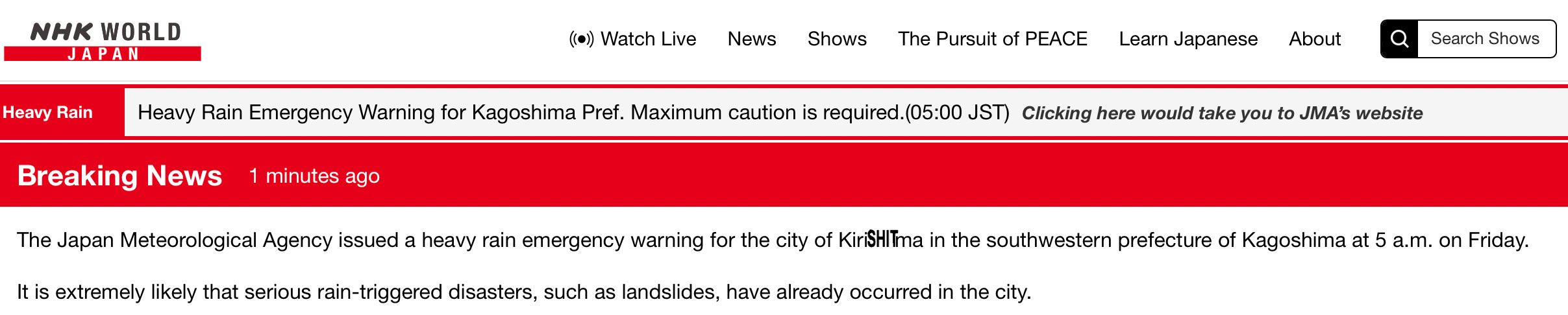 KiriSHITma destroyed in landslide and flooding